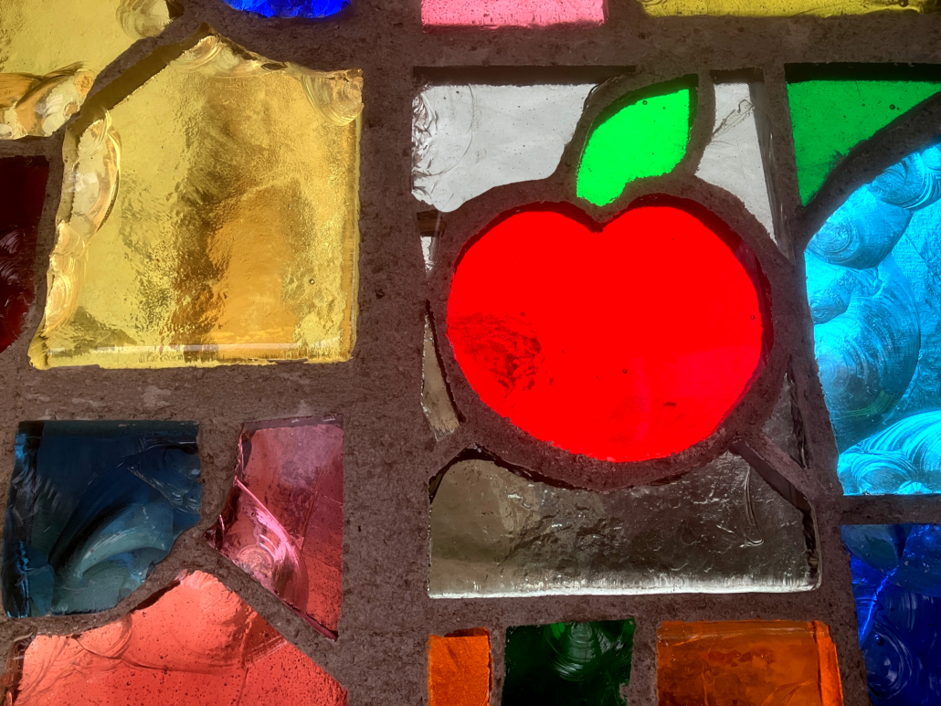 Et pour finir, une touche d’humour et de complicité : une pomme, repère familial du client et clin d’œil du verrier.