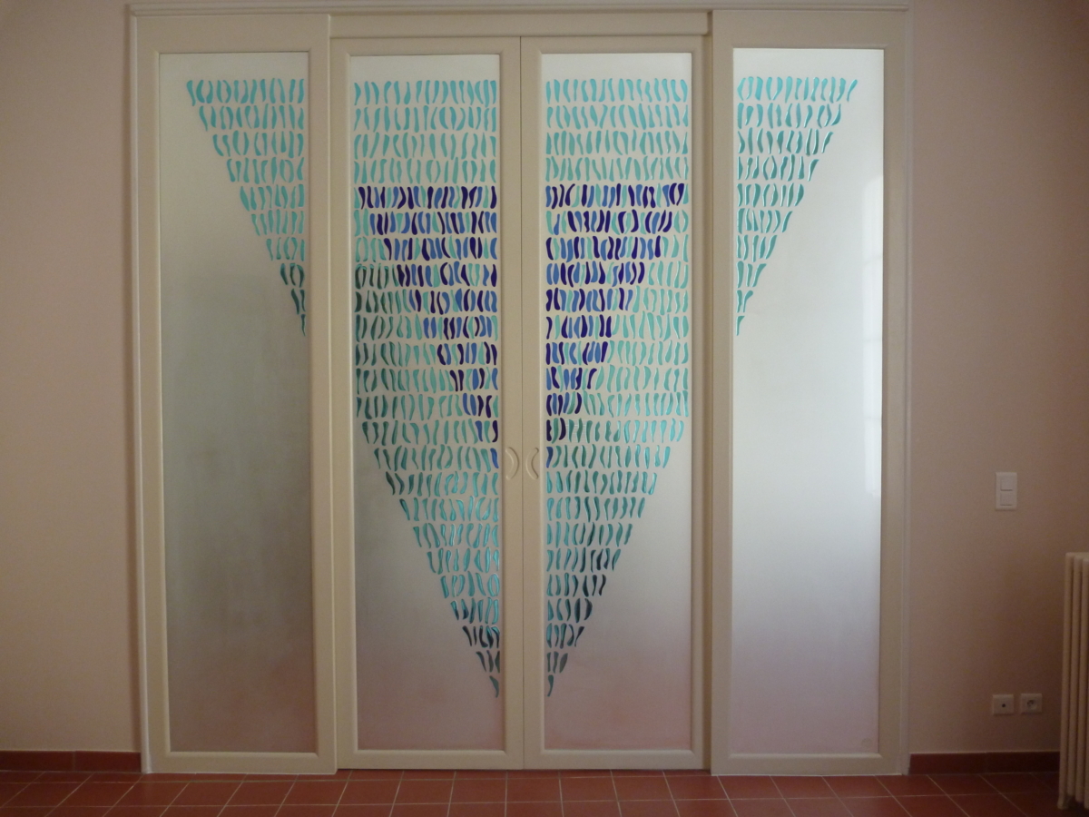 COLLAGE DE VERRES DE COULEUR SUR UN VERRE DE BASE AU MOYEN DE COLLES TRANSPARENTES